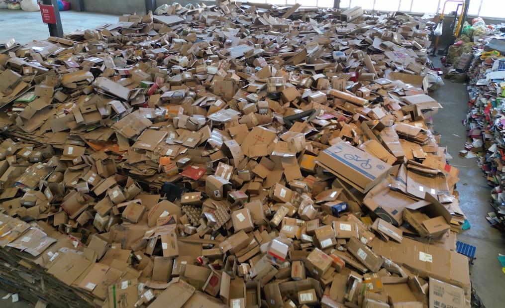 一家垃圾回收企业的分拣中心内堆满了废弃的快递包装纸。新华社记者 司晓帅摄