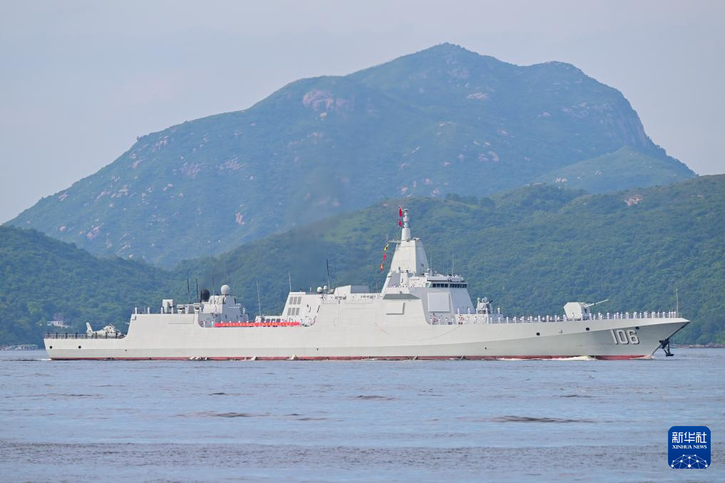 7月3日,海军湛江舰行进在香港水域。新华社记者 朱炜 摄
