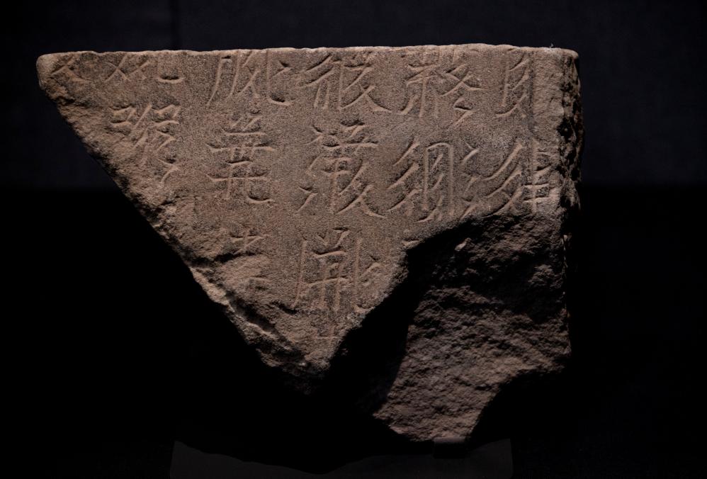 这是2025年7月5日在西夏陵博物馆拍摄的西夏文灰砂岩残碑。新华社记者 杨植森 摄