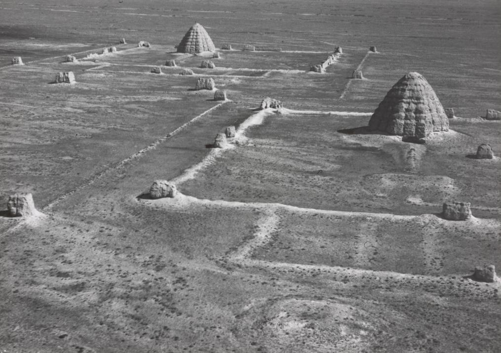 20世纪30年代德国飞行员卡斯特飞越宁夏贺兰山时拍摄的西夏陵3号陵。新华社发