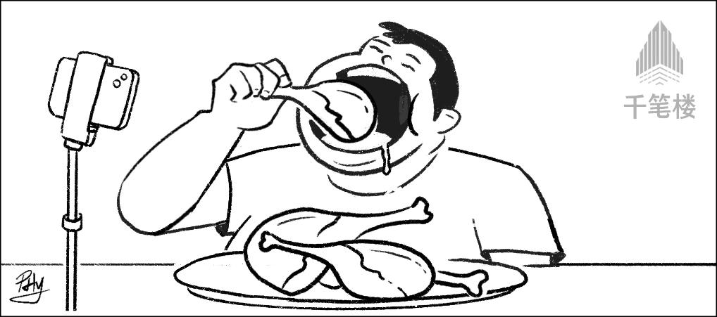 然而,由于多方面原因,极端吃播的现象屡禁不绝。一些主播想尽办法钻管理的空子,逃避整治。平台白天审核较严,他们就改到深夜直播;平台对极端吃播有要求,他们就在吃播的视频里标注“非一人食用”……