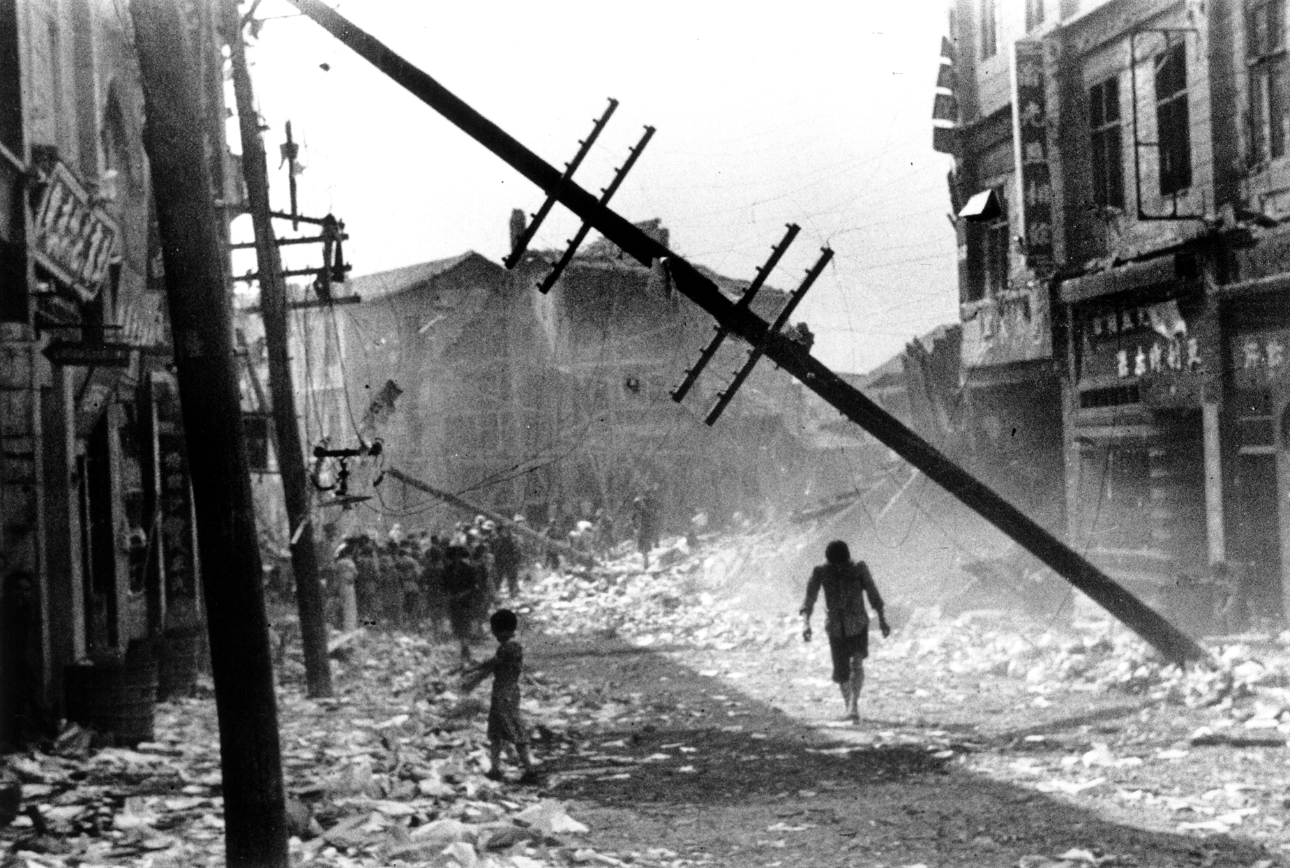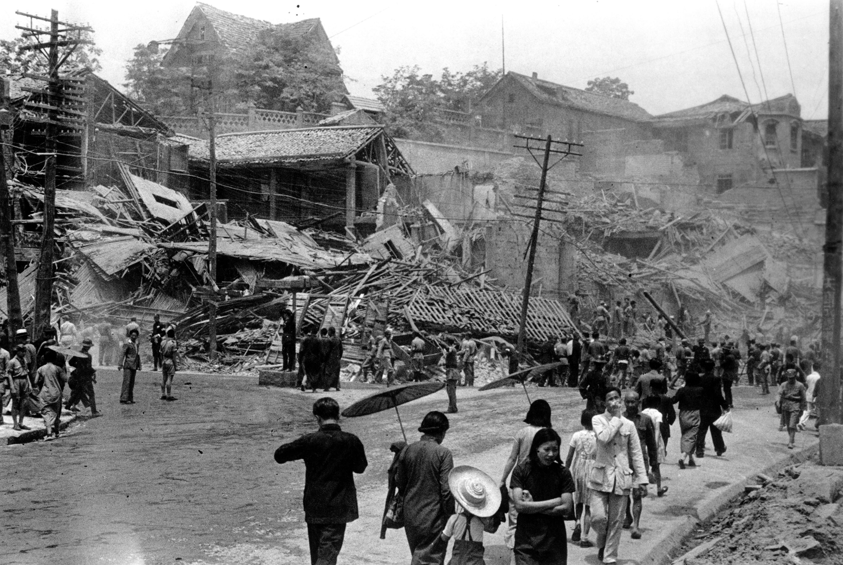1941年8月,日机轰炸重庆市区,原有的闹区碎片满地,形同废墟。资料图