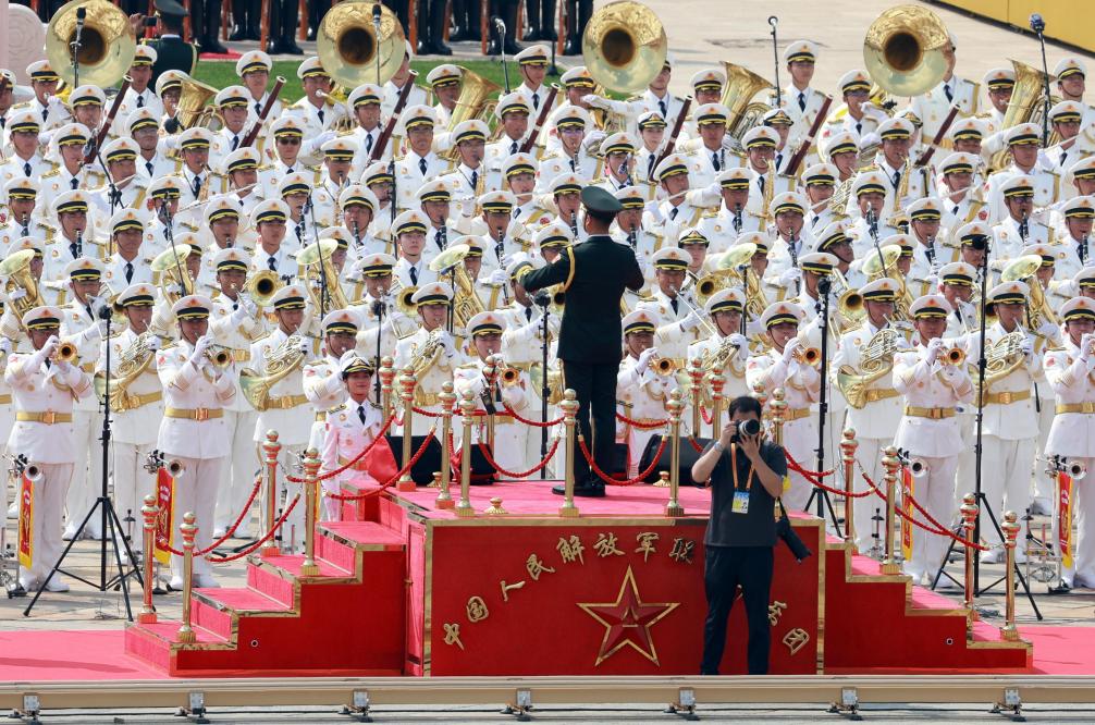 这次报道,很多点位的记者,拍下了引发全网共鸣的经典作品,比如敬礼老兵与受阅部队同框的照片,和平鸽与国徽同框的照片,天坛与战斗机同框的照片。这些都是记者通过他的镜头语言,来表达思想,来传递价值。这些照片的经典性和思想性,正是新华社国家摄影队的气质。