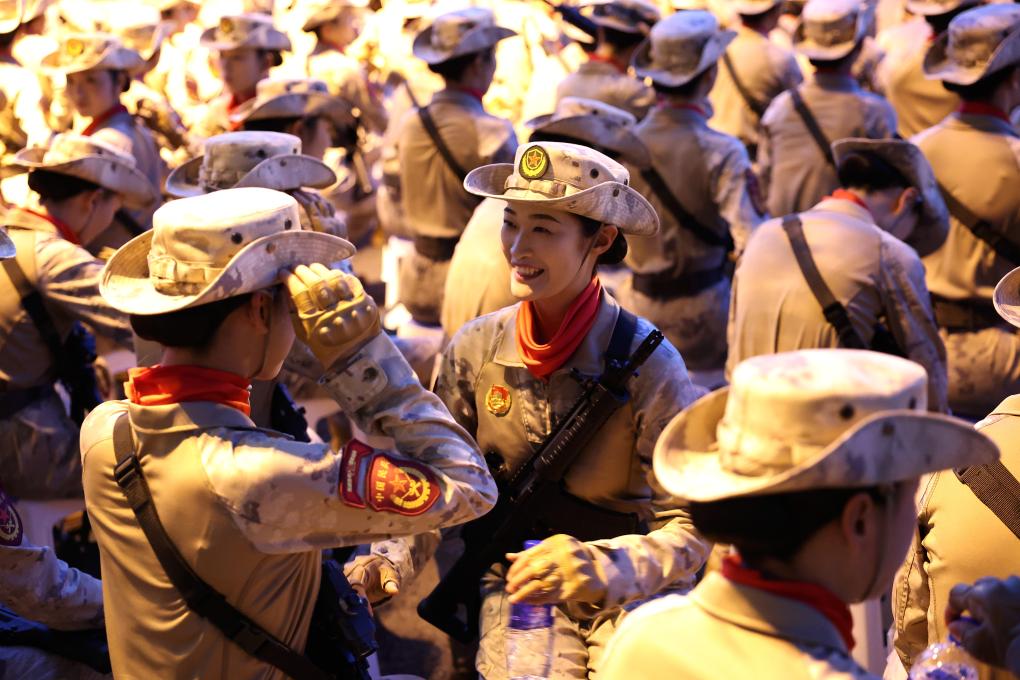 这是纪念大会开始前,受阅部队在整理着装。新华社记者 雒圆 摄