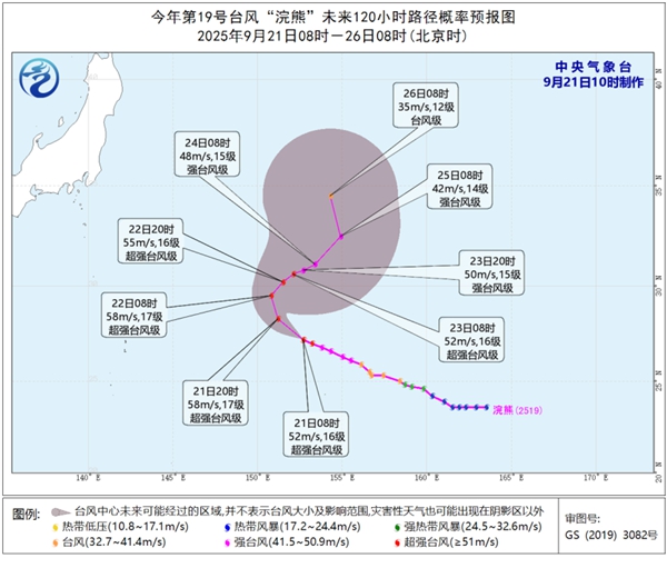今年第19号台风“浣熊”(超强台风级)的中心今天上午8点钟位于日本东京东偏南方向约1550公里的西北太平洋洋面上,就是北纬27.2度、东经152.7度,中心附近最大风力有16级(52米/秒),中心最低气压为935百帕,七级风圈半径180-250公里,十级风圈半径140公里,十二级风圈半径90-100公里。