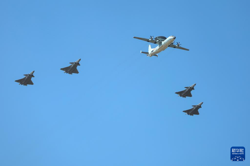 9月23日,在第十一届空军航空开放活动和长春航空展上,空警-500和歼-20编队通场。新华社发(谭巳成 摄)