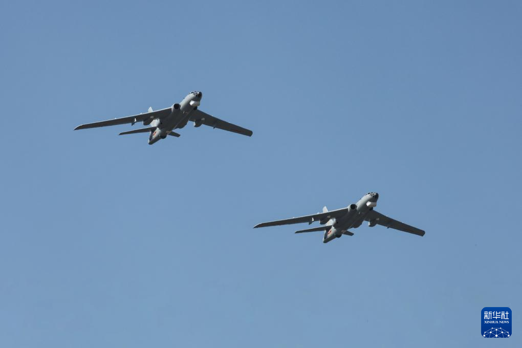 9月23日,在第十一届空军航空开放活动和长春航空展上,轰-6双机编队进行飞行展示。新华社发(谭巳成 摄)