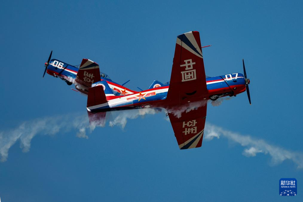9月23日,在第十一届空军航空开放活动和长春航空展上,“天之翼”飞行表演队进行飞行表演。新华社发(谭巳成 摄)
