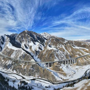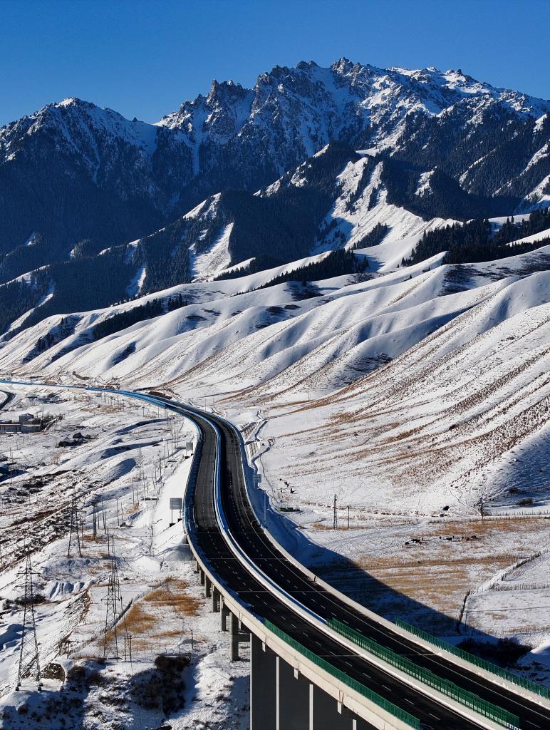 桥隧相连的乌尉高速公路穿越天山山脉(2025年12月23日摄)。新华社记者 胡虎虎 摄