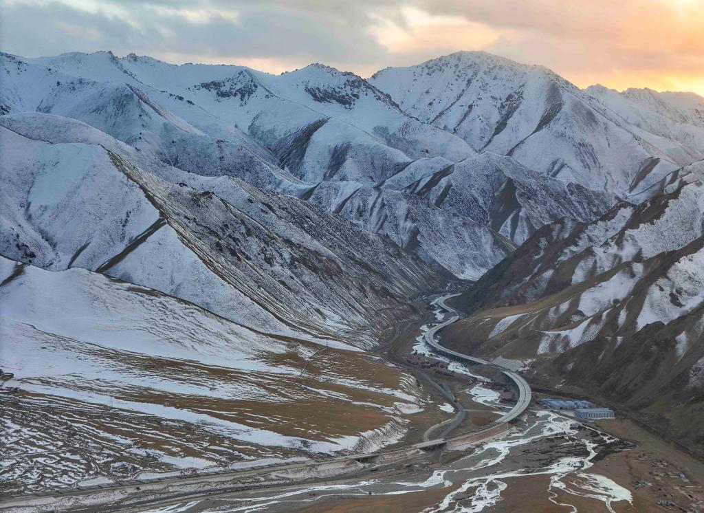 国道G216线海拔超4000米的胜利达坂附近(2021年2月5日摄)。过去很长一段时期内,从乌鲁木齐去往南疆,需从这里翻越天山。新华社记者 胡虎虎 摄