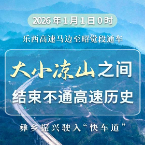 四川乐山至西昌高速公路马边至昭觉段将于2026年1月1日0时通车。乐山市马边彝族自治县地处小凉山,凉山彝族自治州昭觉县地处大凉山。这条连通大小凉山的高速公路,将改写彝乡闭塞的历史,使当地乡村振兴驶入“快车道”。