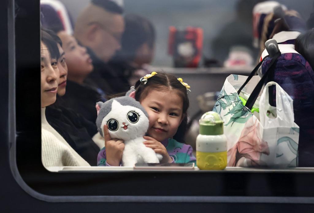 2月2日,旅客带着孩子在兰州西站乘车出行。新华社发(侯崇慧 摄)