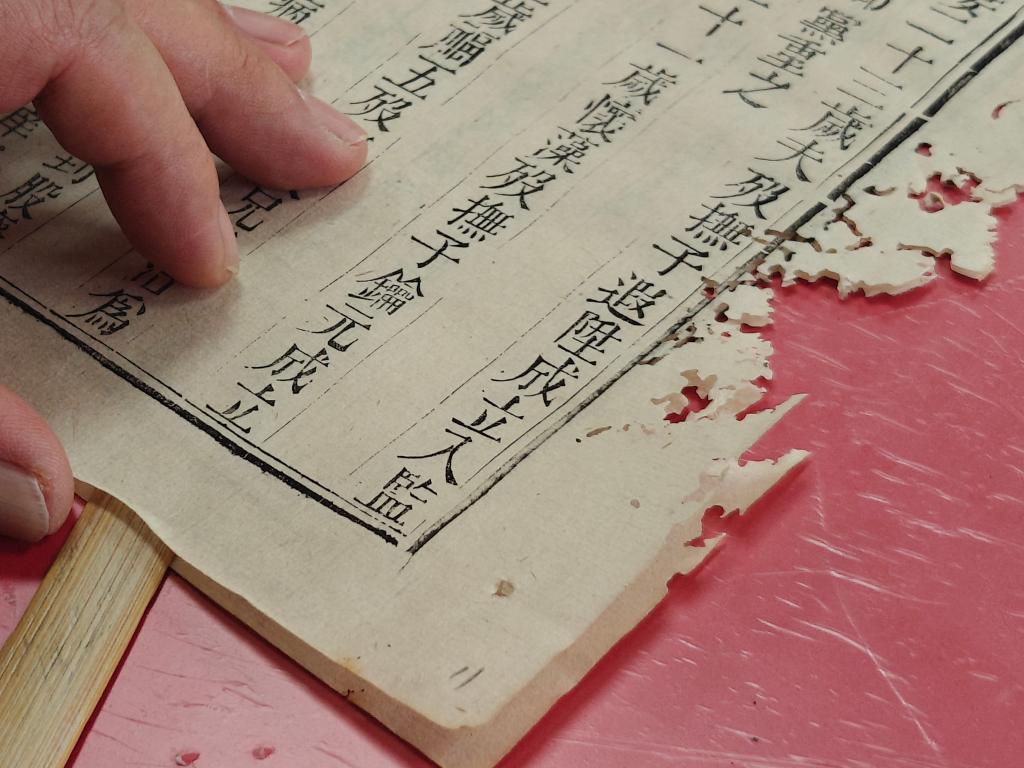 古籍修复是一场严谨的“救治”。馆藏古籍多面临虫蛀、鼠啮、纸张脆化、絮化等“伤病”,有的破损严重不成叶片。“一本书送来,要先全面评估破损状况,对症下药。原书用什么纸,我们就用什么纸修复,力求材质统一,最大限度保留原貌。”