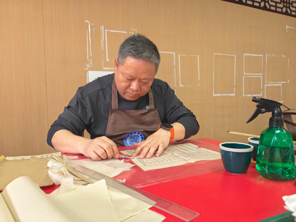 不同于字画修复,古籍修复有一条“铁律”:即便知晓缺失文字,也绝不擅自添补。“这既是为保留原始状态、杜绝造假嫌疑,更是对历史的敬畏。”张奇说。