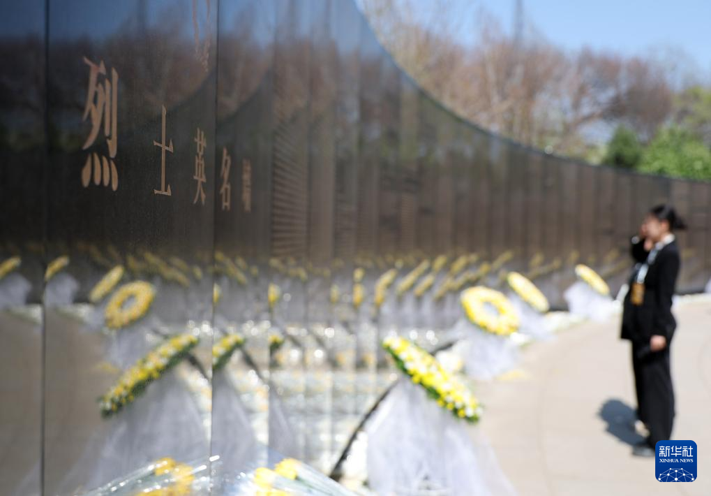 4月23日,在沈阳抗美援朝烈士陵园,人们向烈士敬献鲜花,并瞻仰烈士英名墙。新华社记者 李钢 摄