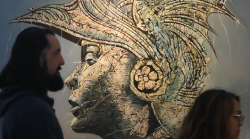 4月24日,人们参观卡塔尔多哈卡塔拉文化村举行的中卡书法交流展。