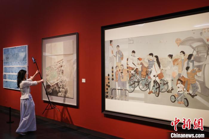当日,由中国美术家协会、中国工笔画学会、江苏省文化和旅游厅主办,中国文联美术艺术中心、江苏省美术馆承办的第十二届中国工笔画作品展亮相南京,以“工成当代 固本开新”的学术主题和近500件参展作品的规模,及其风格多样、个性鲜明的艺术探索,传递出响应时代、守正创新的创作导向,呈现了一个传统与时代深度对话的宏阔视觉空间。中新社记者 泱波 摄