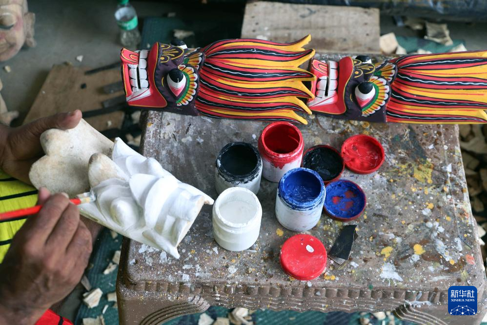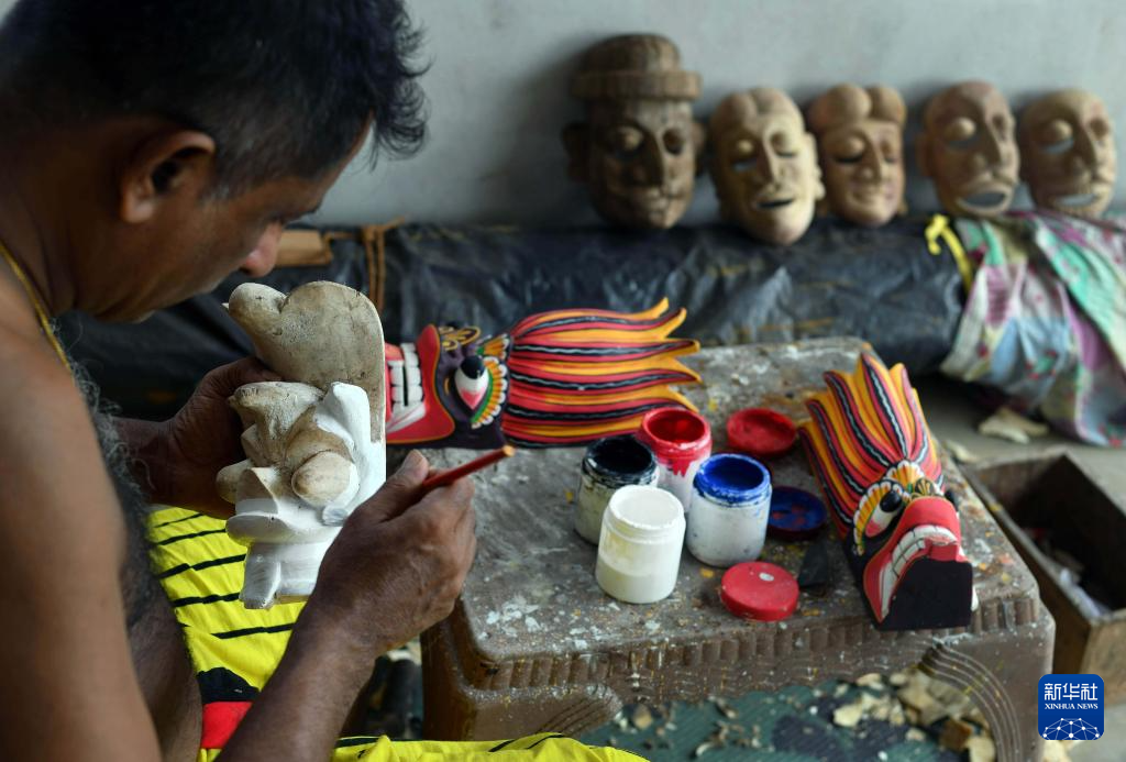 6月25日,一名手工艺者在斯里兰卡戈纳波拉村制作斯里兰卡传统面具。