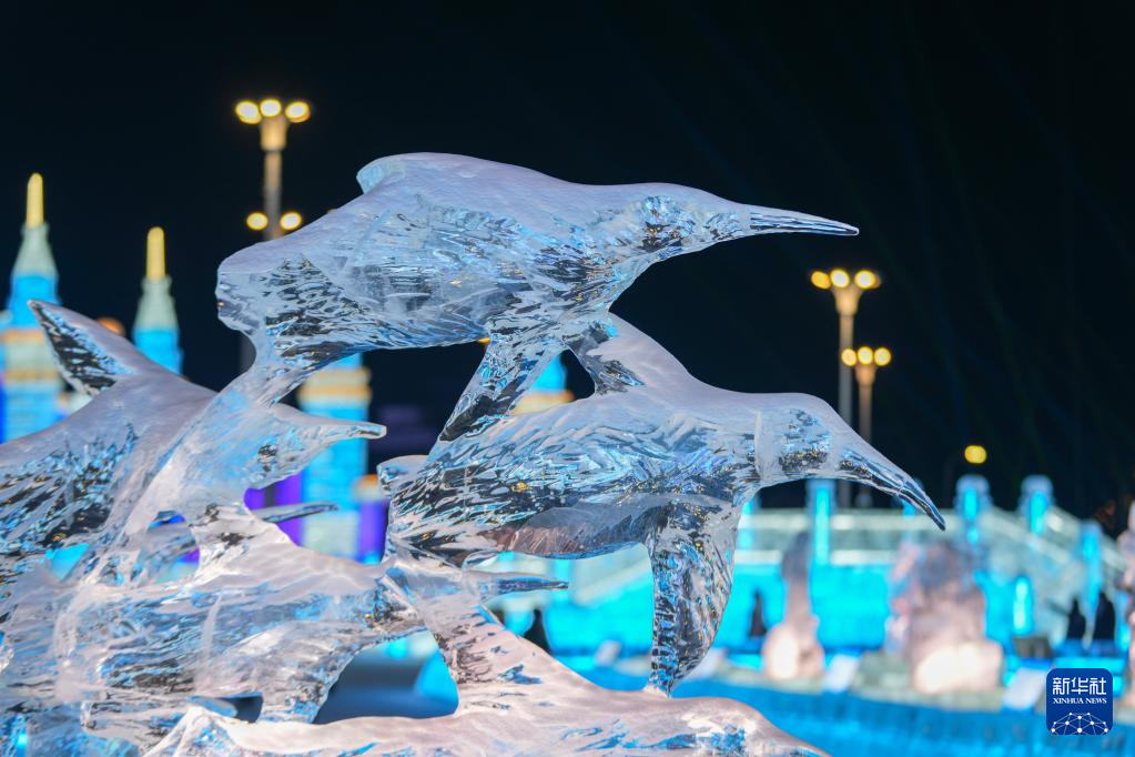 近日,一批冰雕新作在哈尔滨冰雪大世界亮相,与第37届中国·哈尔滨国际冰雕比赛作品及园区原有冰雕遥相辉映,共同点亮北国冬夜。