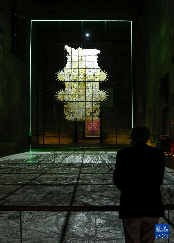 4月1日,观众在意大利罗马国家博物馆戴克里先浴场参观特别展览“邬建安:变形记”。