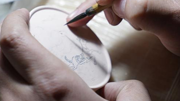 4月10日,刘墉介绍自己的画作。