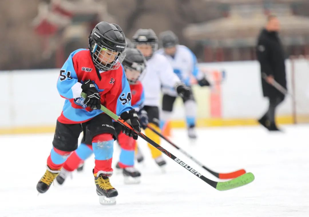 ▲2月12日,在河北承德避暑山庄冰上运动基地,学生们在老师指导下练习冰球技巧。新华社发(刘环宇摄)