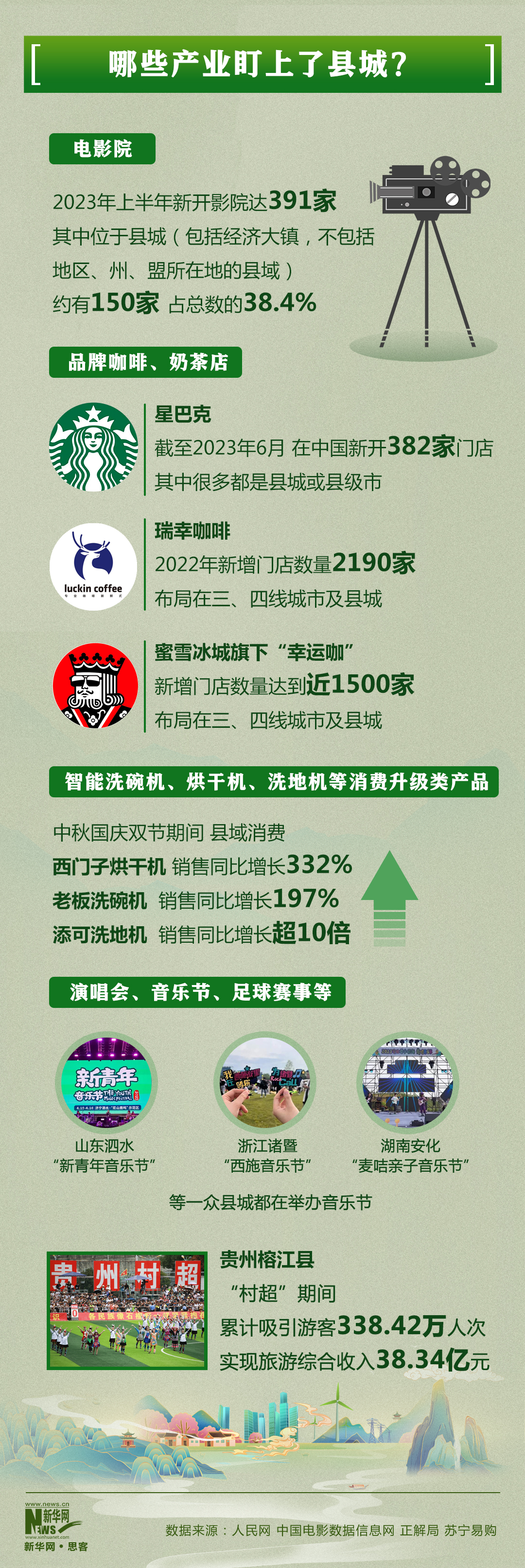 还有今年火爆的“村BA”“村超”。贵州榕江县相关负责人介绍,“村超”期间,榕江全县累计吸引游客338.42万人次,实现旅游综合收入38.34亿元。从咖啡到智能家电再到“村超”,曾经默默无闻的县城如今正因消费的崛起,向外界展现着其不可忽视的影响力。