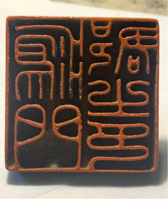 唐代百官“皆用铜印”,是一种明确的制度。铜印由于长期埋藏于地,距今已有一千多年,经过长时间的酸化腐蚀及氧化锈蚀。因此,铜印的锈斑是由内向外一层一层长出来的。细观“雁门郡之印”贴骨锈坚固细密,红斑绿锈层次分明,贴骨处黑锈,黑锈之上为红锈,再之上呈绿锈,绿锈有明显的结晶斑。在一百倍放大镜观察锈色绿、蓝锈色很有魅力,它给本有着沧桑之美的铜印增添了一抹神秘的色彩,从皮壳包浆来看当是新中国成立前出土,其坑口具有典型的北方特征。南方的坑口红绿锈居多。这种红斑绿锈层次分明,由黑而红,由红而绿,锈而结晶,当属北方的坑口。唐代官印能保存如此完整的品相非常难得。