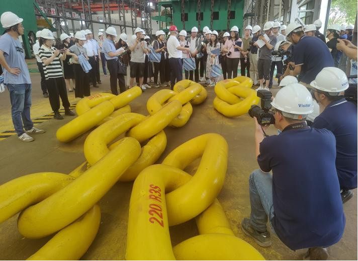 研发产品培育新质生产力,不仅需要新技术,还要有新的生产方式、新的发展思路。近年来,亚星锚链从“深海”向“陆地”延伸,开拓矿用链市场,引领企业从海上油气平台系泊链的研发生产成功挺进陆上采煤矿用链的研发和产业化。“刮板输送机是煤炭运输工具,要靠链条传动,之前煤矿用链条主要依靠进口,损耗很快,没多久就要更换。而我们海工用的链条,要求超过20年不换,于是5年前开始尝试把船舶链条的制造技术,应用到采矿行业。”陶兴介绍,目前公司生产的矿用链产品已在神东、潞安等国内大型煤炭矿井陆续交付使用。