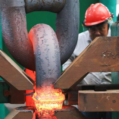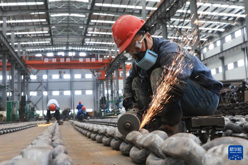 6月4日,在位于江苏省泰州市靖江市的江苏亚星锚链股份有限公司,工人在生产车间作业。新华社记者 毛俊 摄