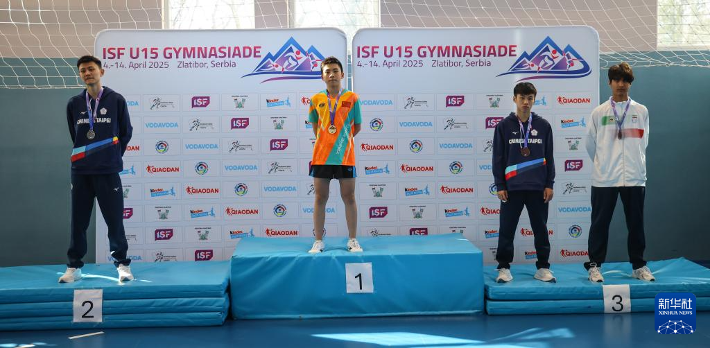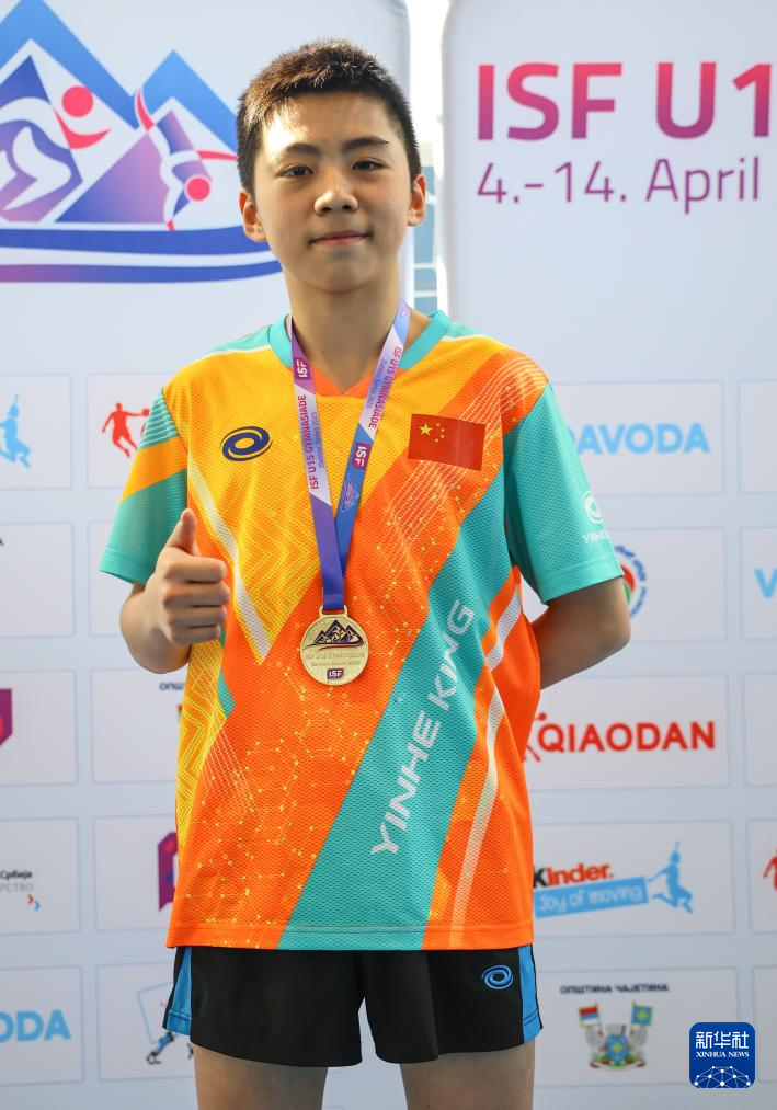 当日,在2025年U15世界中学生夏季运动会乒乓球男子单打决赛中,中国选手郑权宇战胜中国台北选手郑旻修,获得冠军。