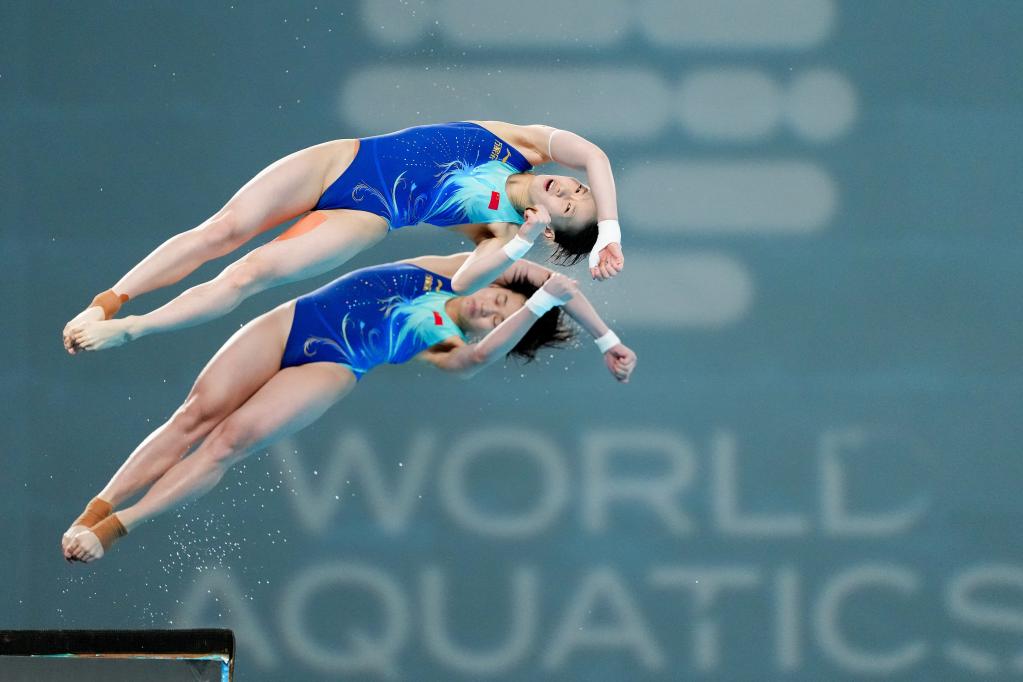 5月2日,陈芋汐(上)/全红婵在比赛中。新华社记者 鞠焕宗 摄
