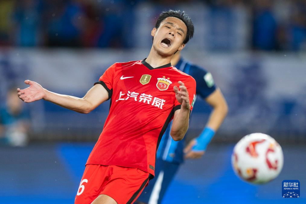 5月5日,上海海港队球员刘若钒在比赛中错失进球机会。