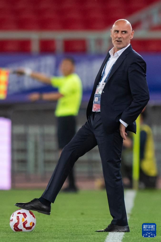 5月5日,上海海港队主教练穆斯卡特在场边观赛。