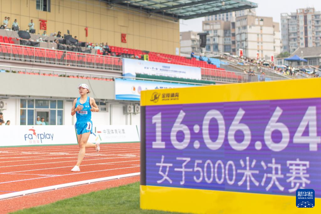 5月14日,河南队选手梁田田在决赛冲线后。最终,她以16分06秒64的成绩夺得冠军。