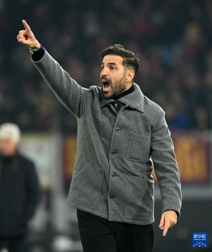12月15日,科莫队主教练法布雷加斯在场边指挥。