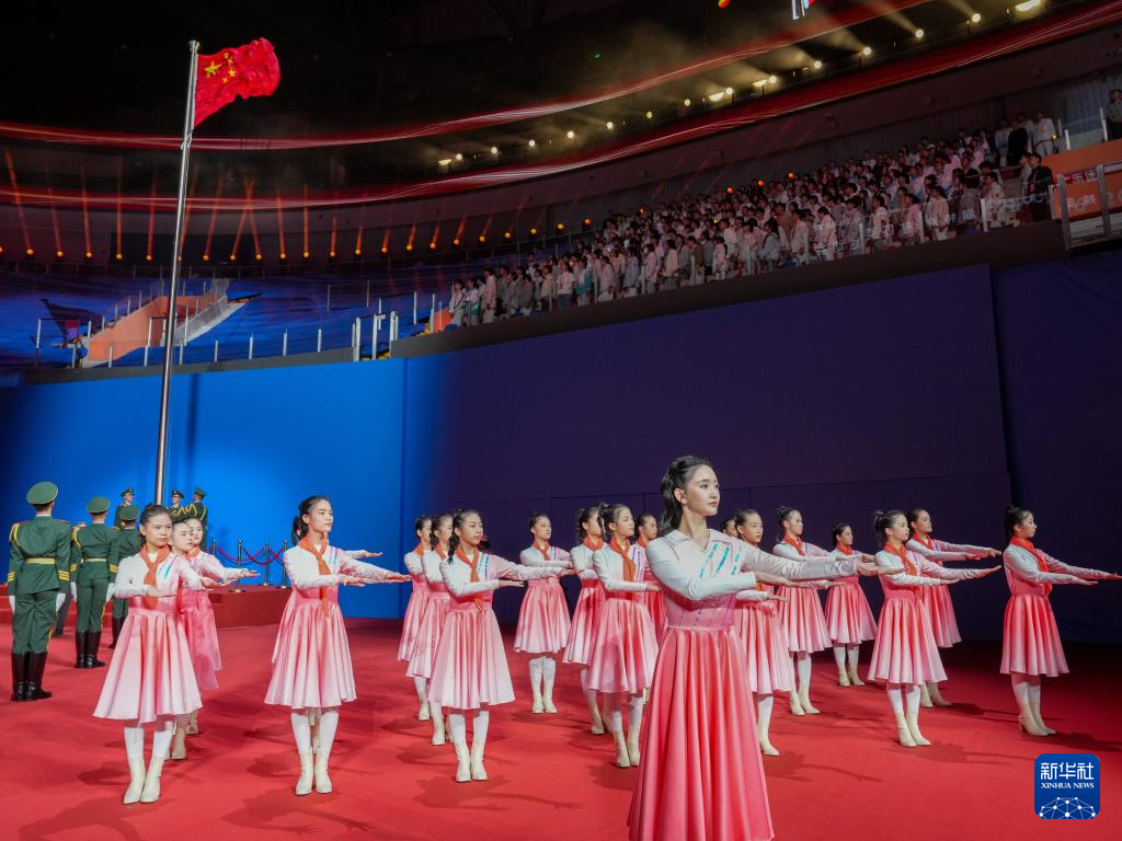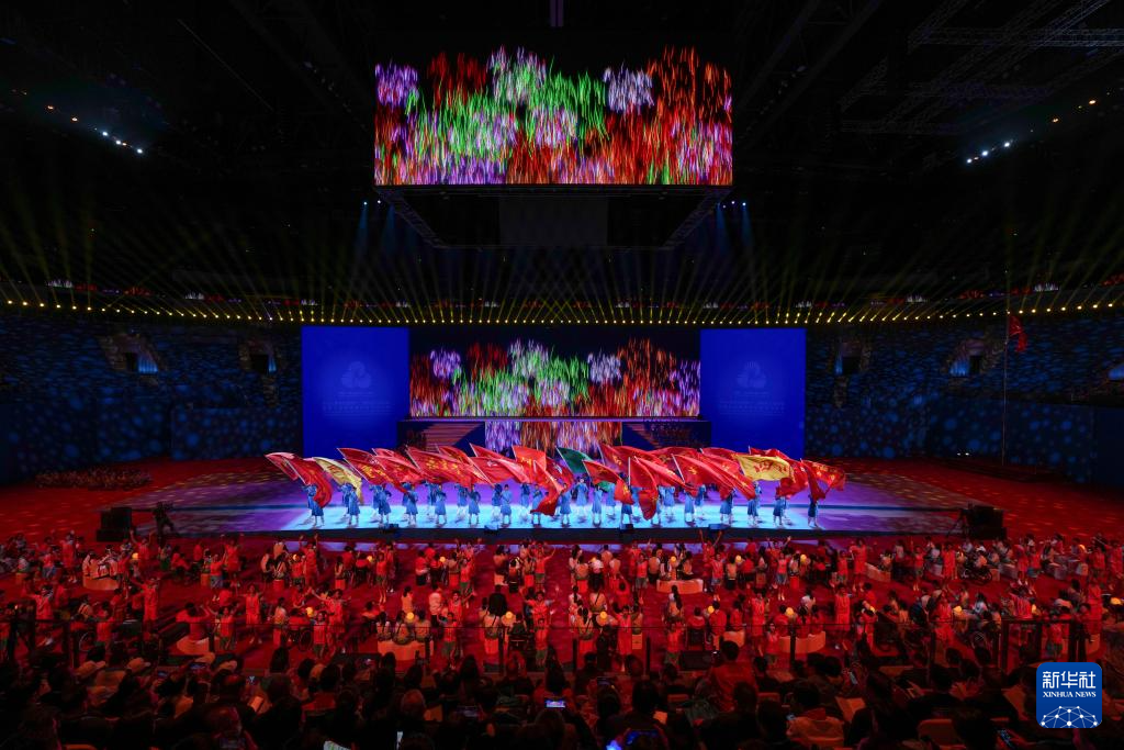 这是12月15日拍摄的闭幕活动现场迎国旗入场环节。