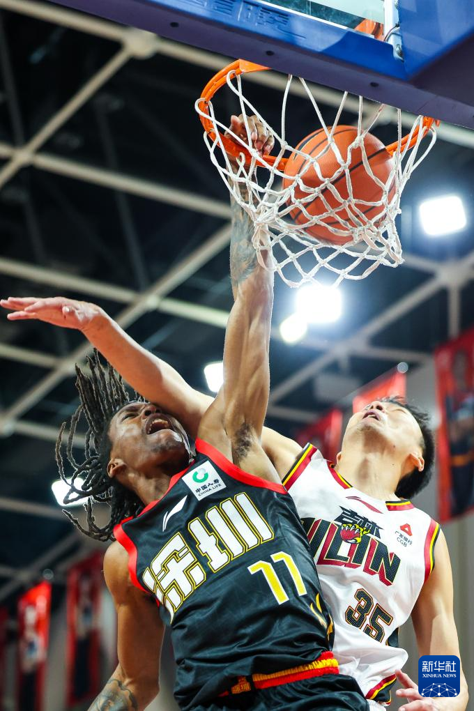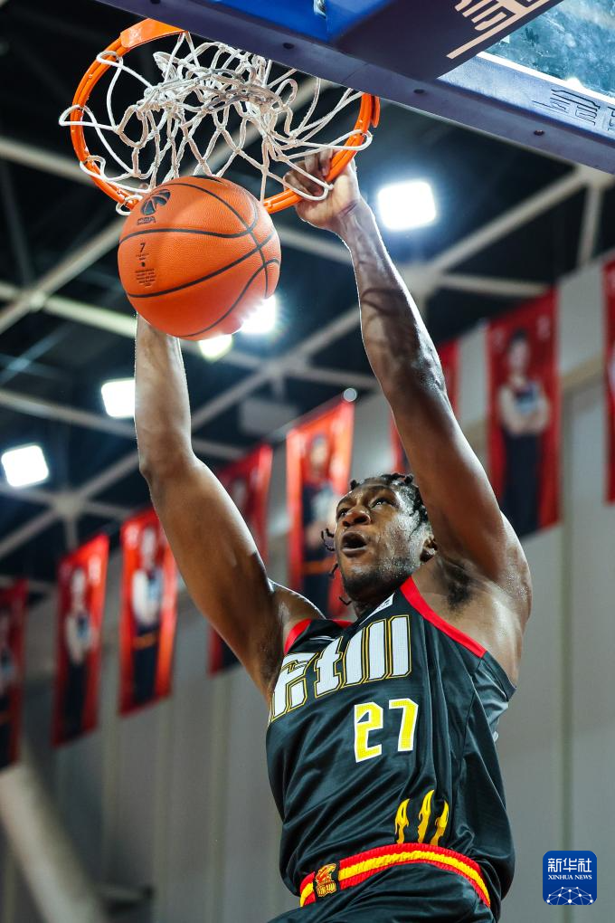 12月16日,深圳马可波罗队球员卡巴在比赛中扣篮。
