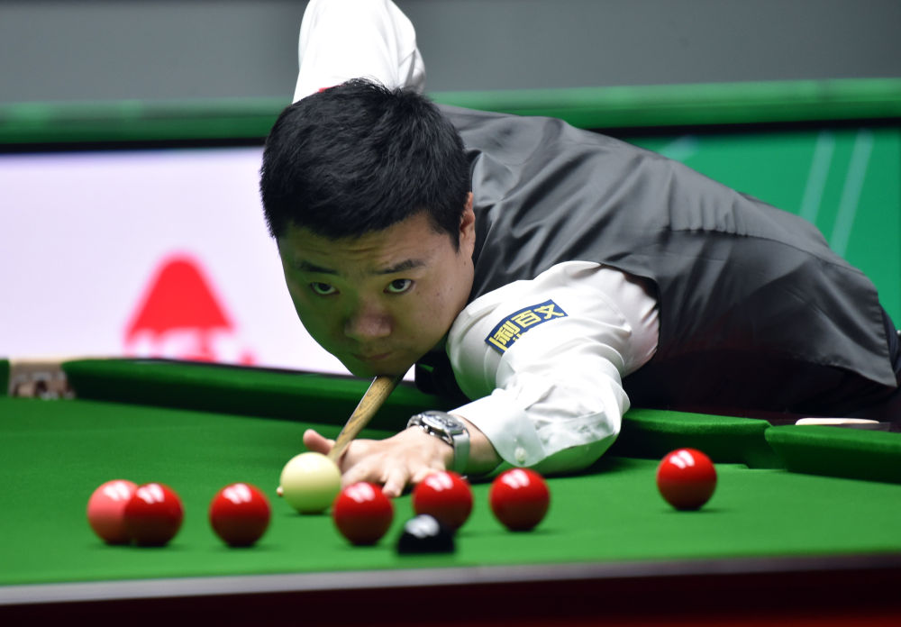 2025年3月5日,丁俊晖在比赛中。当日,在2025年斯诺克世界大奖赛首轮比赛中,中国选手丁俊晖3比4不敌中国选手徐思,无缘下一轮。新华社发(卢炳辉摄)