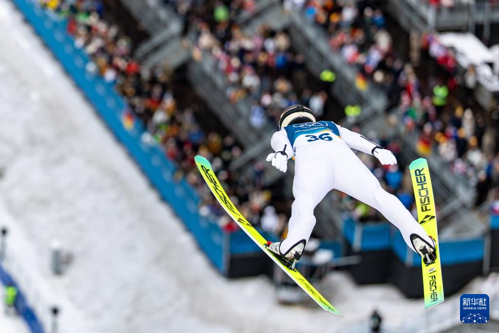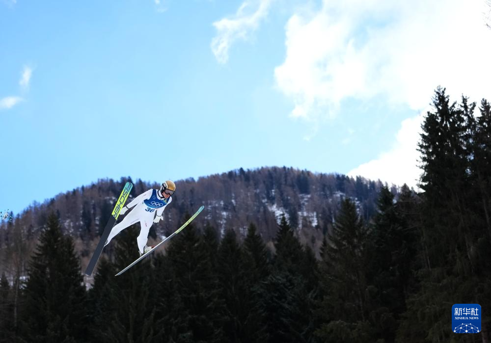 2月17日,奥地利选手兰帕特尔在个人大跳台比赛轮中。