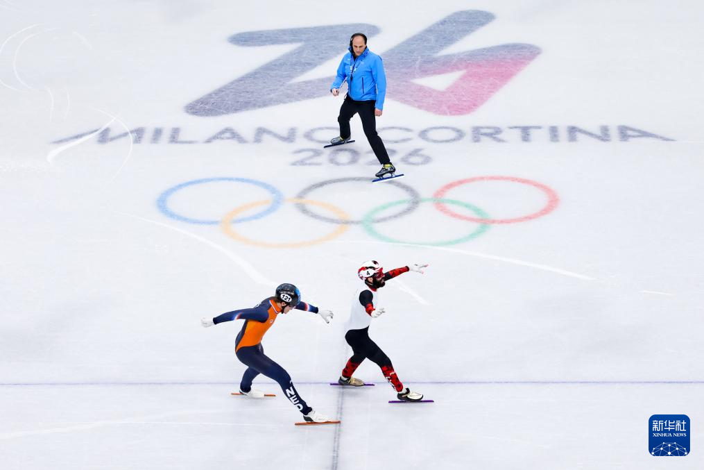当地时间2月18日,在米兰-科尔蒂纳冬奥会短道速滑男子500米接力A组决赛中,加拿大队选手史蒂文·杜博伊斯、荷兰选手梅勒·范特·沃特和延斯·范特·沃特分获冠、亚、季军。