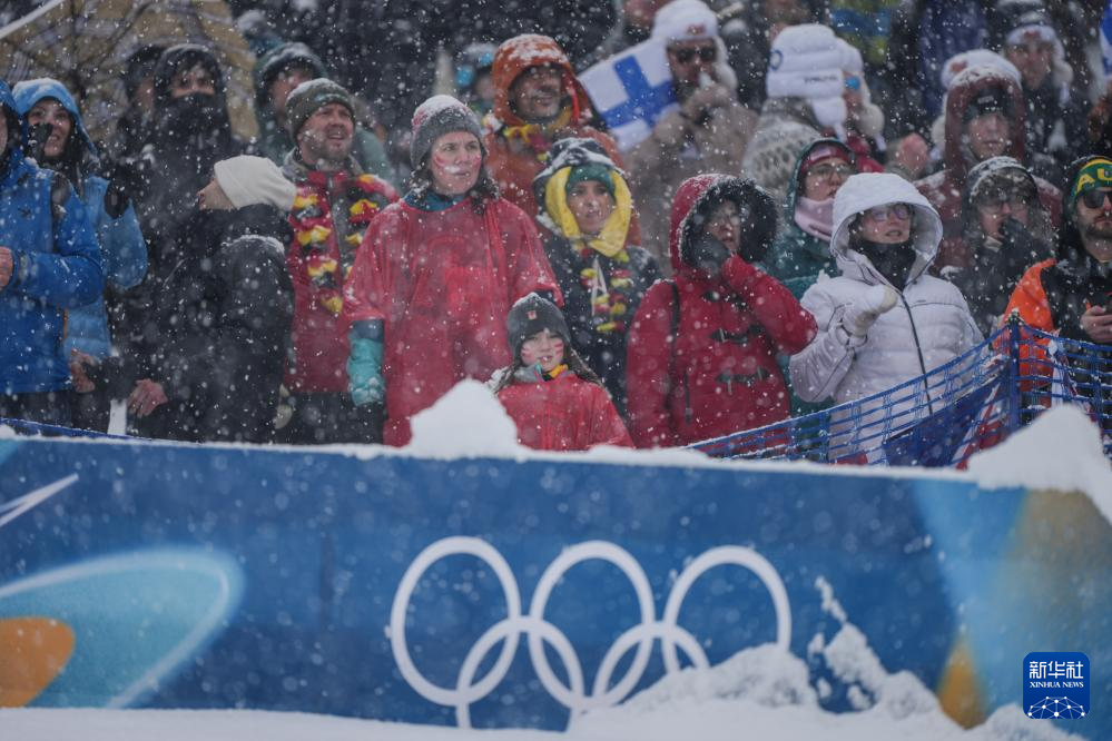 2月19日,观众在雪中观看比赛。