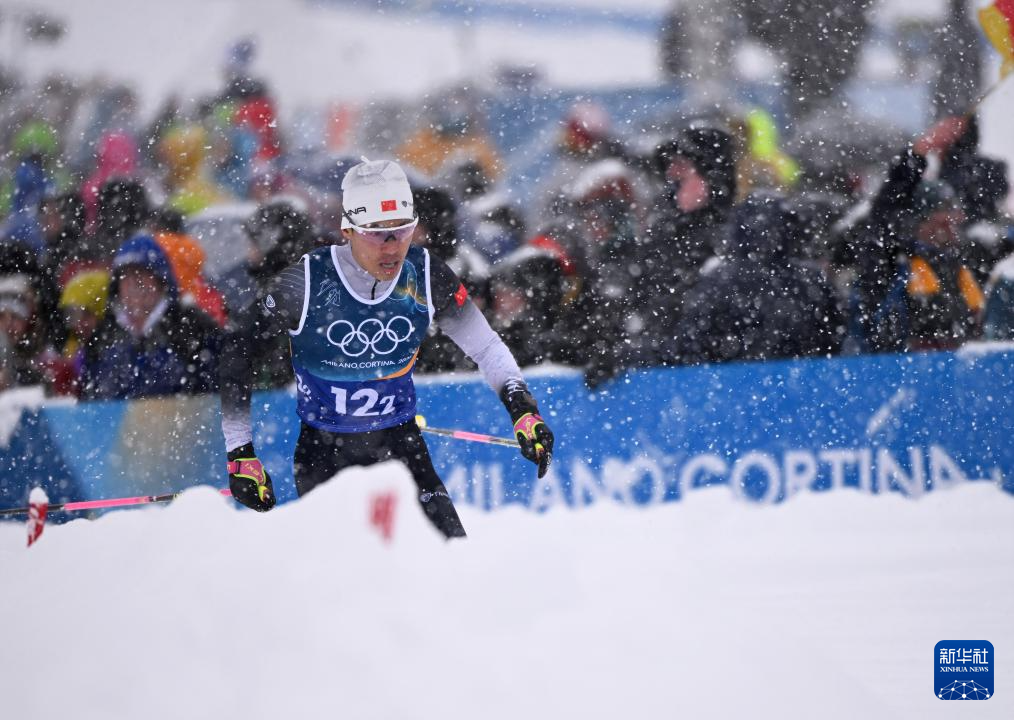 2月19日,中国队选手赵子贺(左)在比赛中。