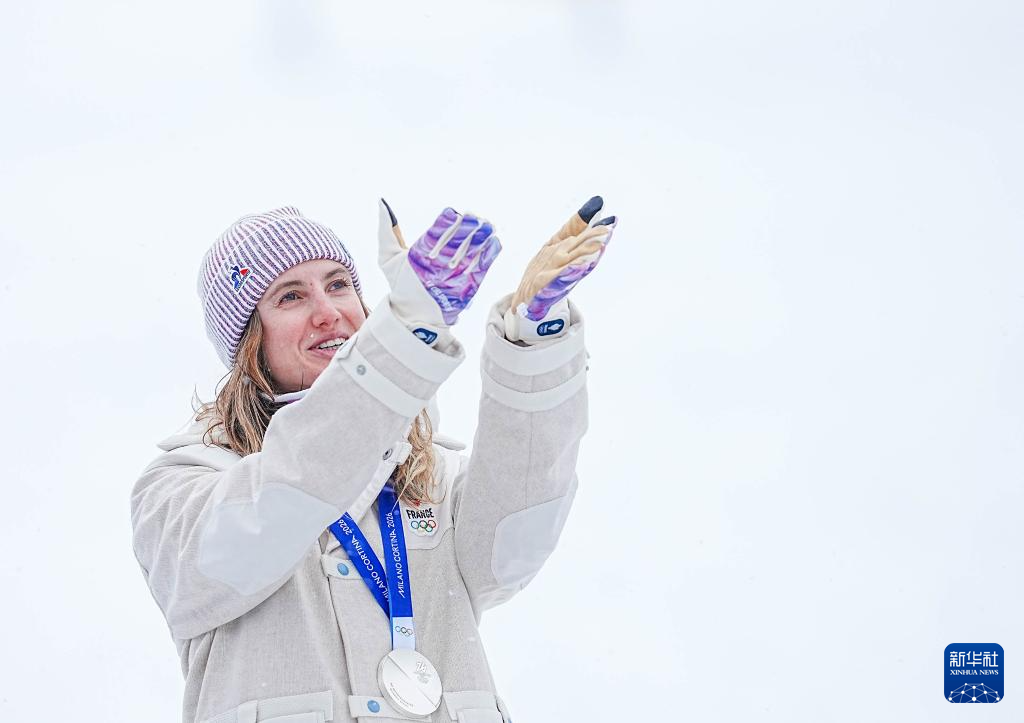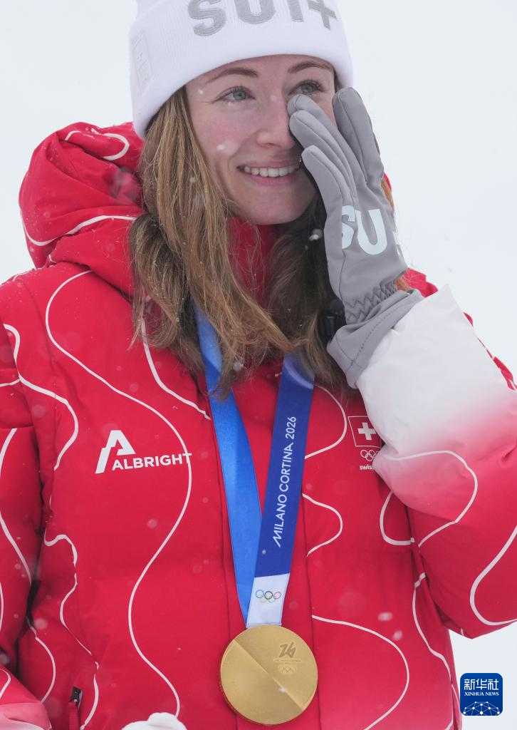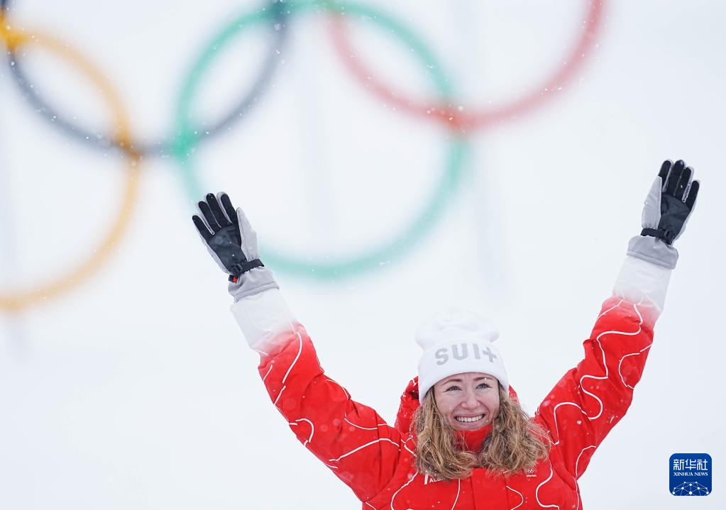 2月19日,瑞士选手法东在比赛后庆祝。她获得冠军。