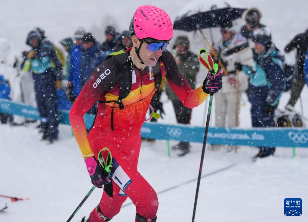 当地时间2月19日,米兰-科尔蒂纳冬奥会滑雪登山男子个人短距离比赛在意大利博尔米奥举行。
