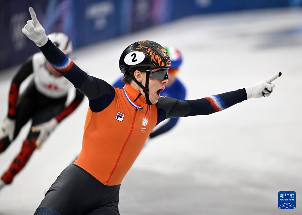 2月20日,荷兰队选手延斯·范特·沃特在冲线后庆祝。