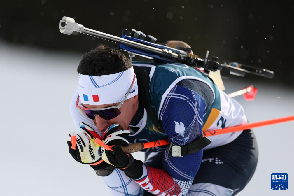 2月20日,法国选手康坦·菲永·马耶在比赛中冲线。他获得季军。