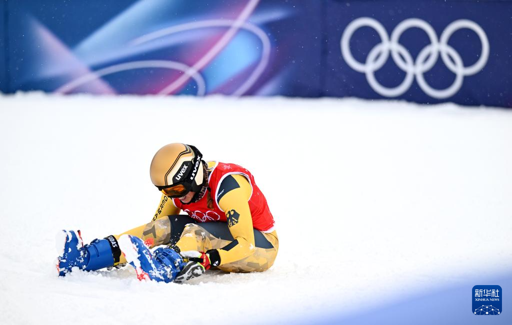 2月20日,德国选手达妮埃拉·迈尔在决赛冲线后庆祝。她获得冠军。