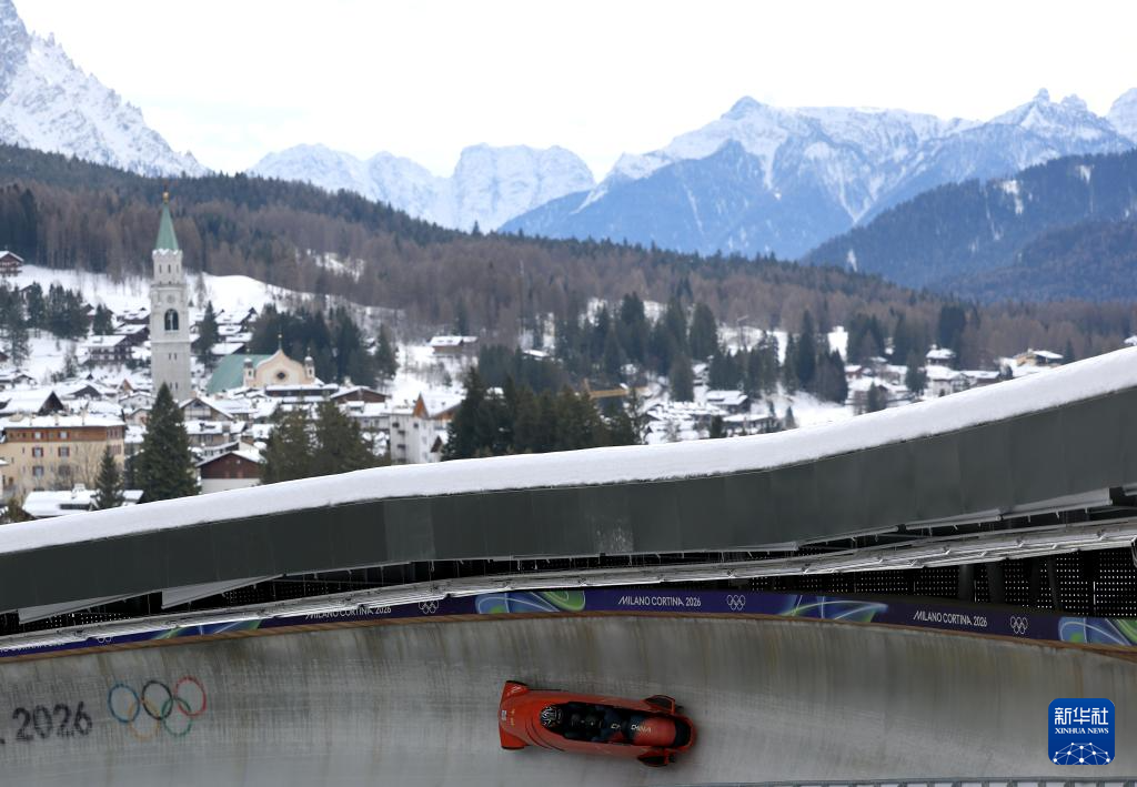 当地时间2月21日,米兰-科尔蒂纳冬奥会雪车项目男子四人赛在意大利科尔蒂纳举行。