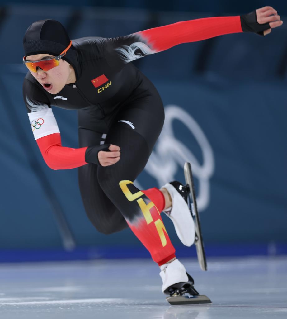 中国选手田芮宁在速度滑冰女子500米决赛中。她获得第16名。新华社记者 杜潇逸 摄